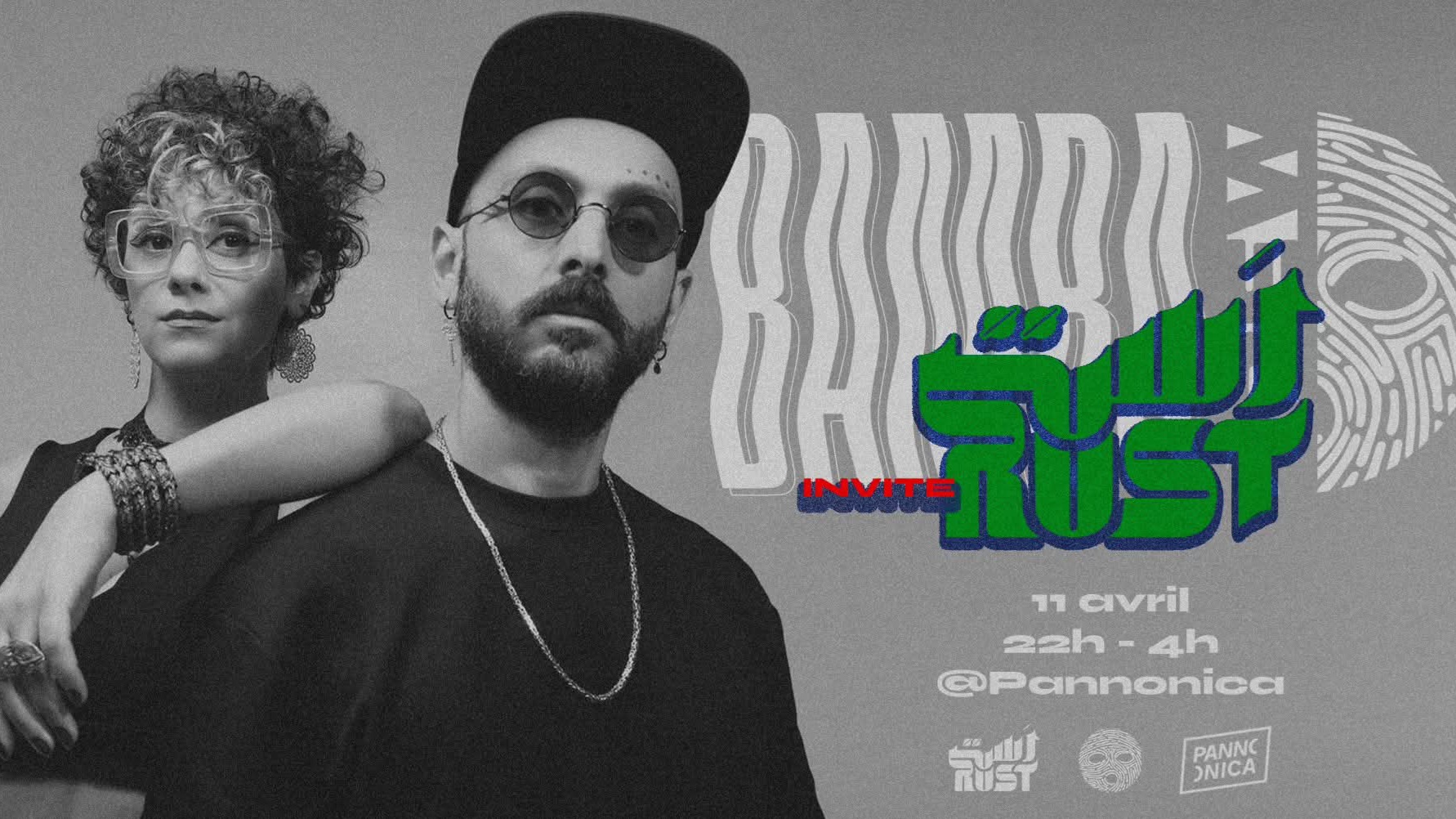 Pannonica 9 rue Basse Porte, NantesOn se retrouve pour la bamboche annuelle au Pannonica, où on a le plaisir d’inviter le groupe syro-libanais Rust رَست en live ! Bien évidemment, les DJs du crew seront là avant et après le groupe afin de partager leurs découvertes undergrounds et dancefloors. -------------------------- 🌚 Samedi 11 avril ⌛️ 22h - 04h / 10€