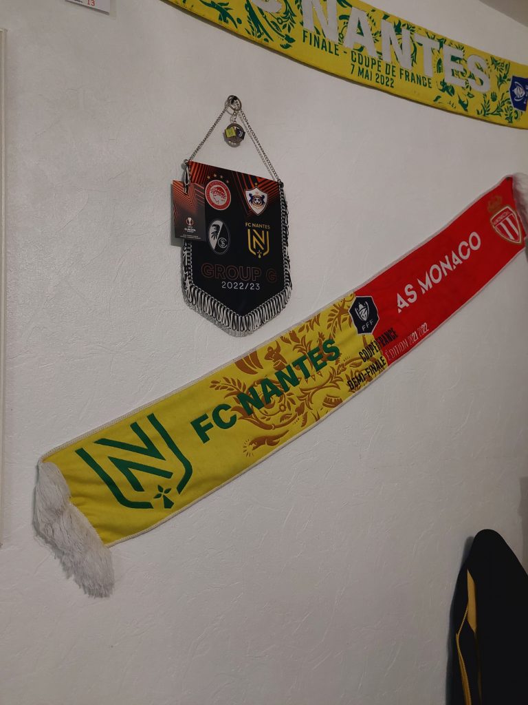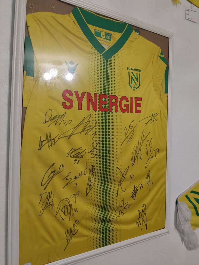 Ici, chaque mur, chaque objet, chaque détail respire le FC Nantes. Des maillots encadrés aux souvenirs accumulés au fil des années, son intérieur est une véritable déclaration d’amour au club nantais.