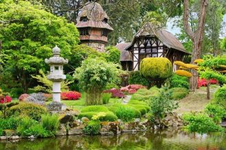 Ce parc de 1,7 hectare séduit par son esthétique zen. Ponts de bois, lanternes japonaises, bambous et bassins en cascade forment un décor dépaysant. Chaque saison y dévoile un charme particulier, des cerisiers en fleurs au printemps aux reflets dorés de l’automne.